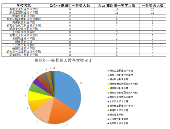 我校获奖选手中,邱睿曦、杨昕睿分别获得湖南省高职组C/C++程序设计赛项的第一、三名,杜煜兴、黄家豪包揽了Java软件开发赛项第一、二名。获得一等奖的26名同学将代表我省参加11月份举行的全国总决赛。本次比赛我校获奖成绩再创新高,充分展示了我校优良的人才培养质量和学生扎实的专业技能水平。
