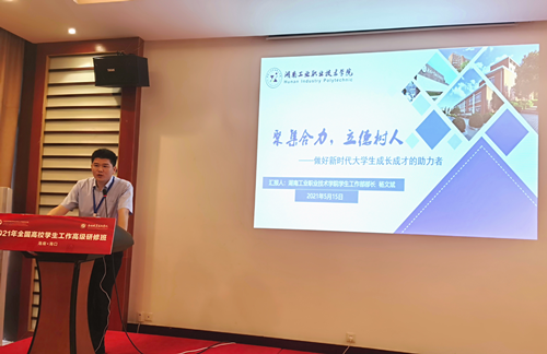 我校学生工作部部长杨文斌作《聚集合力,立德树人——做好新时代大学生成长成才的助力者》主题报告