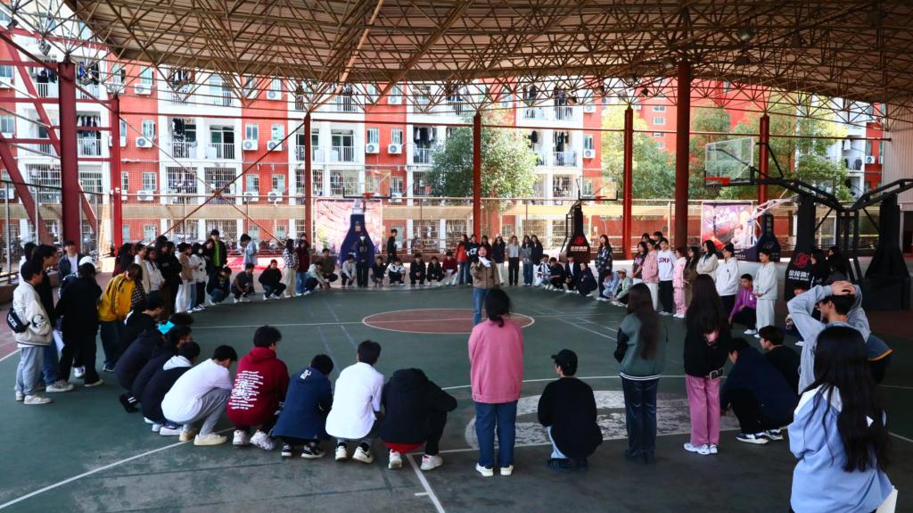 本网讯 “我们有15个人,大家相互扶着一起抬脚就可以站稳了”“我们的小组口号是“青青草原,胜者为王,拼搏为先,谁与争锋”“好开心认识了有趣的你们,以后我们要一起多交流”。3月26日下午,学校训练馆热闹非凡,由学校心理健康教育与咨询中心组织的2023级朋辈队伍“三爱”团体辅导活动正如火如荼地开展。本次活动以“遇见美好,不负青春”人际交往为主题,由专职心理健康教师张秋亮、谢奇担任指导老师,全校大一班级心理委员参加了活动。