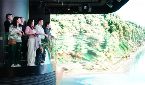 全体党员首先来到了现代化的数字媒体展示馆以及模拟演播厅参观学习,通过工作人员讲解和现场体验的方式,切身感受到了明和文旅灯光、LED显示屏、声光电系统集成等产品带来的科技震撼力与艺术魅力。