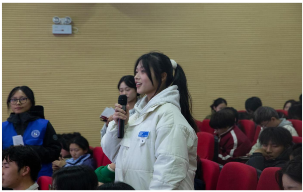 在互动环节中,学生们踊跃参与,就学习、就业等方面存在的问题进行咨询。唐新平耐心听取每一位同学的提问,针对他们所关心的领域提供了专业的建议和指导。他强调,同学们应该根据自身所学的专业优势,结合自己的兴趣和能力,选择一个合适自己的发展领域。同时,他鼓励大家要勇于探索,敢于尝试,不断拓宽视野,让自己在未来的职业道路上更加自信和从容。