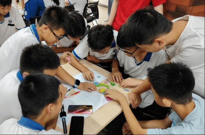 “小朋友们知道吗?抗战时期,货币金融战也异常激烈!”在学华村儿童活动中心,志愿者指着老照片里的边区货币,给孩子们讲起那段经济战线的斗争史。五天时间里,红色教育贯穿始终:9 岁烈士宋振中紧握粉笔的故事让孩子们红了眼眶;中国地图拼图游戏中,孩子们在拼接山河大地时细数脱贫攻坚成就;“国旗下的成长”绘画课上,改革开放的高楼大厦与乡村新貌跃然纸上;剪纸艺术课上,五角星、红旗等图案在指尖流转,孩子们合唱的《没有共产党就没有新中国》响彻村头。