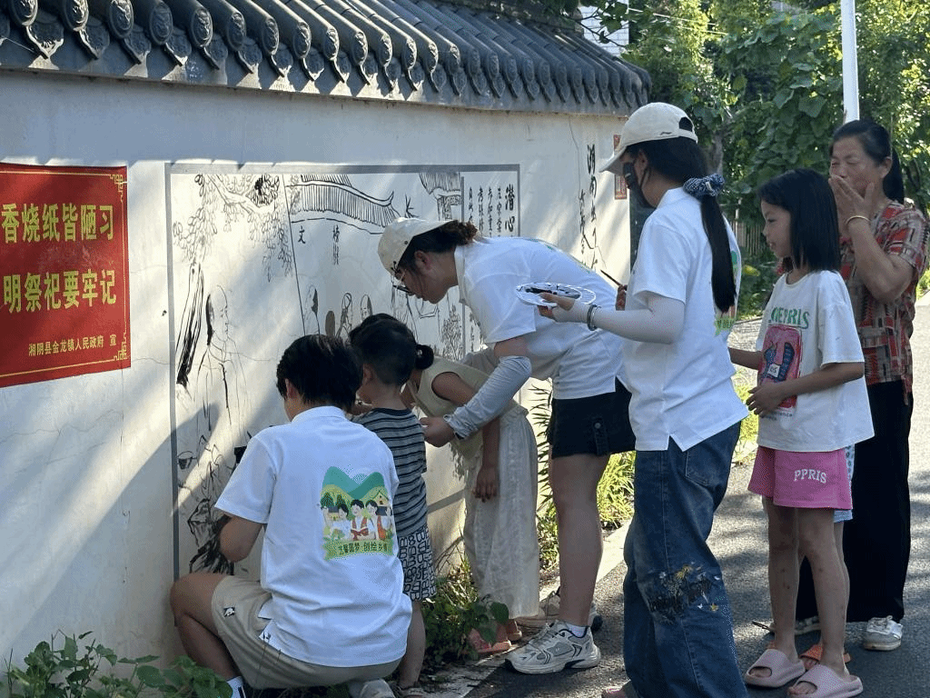 本网讯 近日,湘阴县金龙镇燎源村迎来了一群特殊的“艺术家”——我校“艺馨圆梦 创绘乡情”实践团的师生们来到这里,他们以画笔为媒,为村里的院墙披上了绚丽的“新装”。