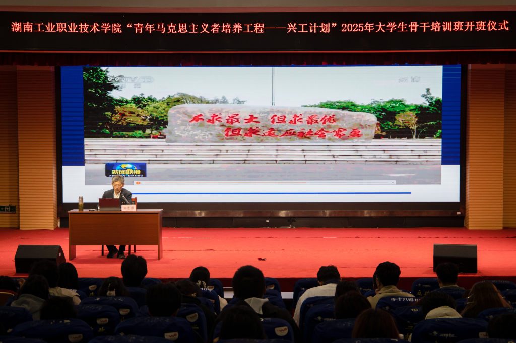 仪式在庄严的国歌声中拉开帷幕。现场,校团委老师宣读了《关于2024-2025学年“青年马克思主义者培养工程——兴工计划”大学生骨干培养班准予结业和表彰优秀学员的决定》,介绍了2025年培训班实施方案、培训班学员守则,并对培训内容及安排进行了详细说明。