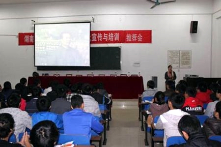 老学员代表、汽车工程学院焊接专业彭俊杰同学以及新学员代表、机械工程系数控专业蒋鹏同学在开班典礼上做了热情洋溢的发言。