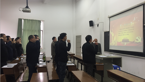 全体党员还重温了入党誓词,并学习了《关于召开2017年度组织生活会和开展民主评议党员有关工作的通知》(湖南工院党字[2018]12号)。会议指出,开好2017年度党支部组织生活会是学习贯彻党的十九大精神的重要举措,是落实习近平总书记关于纠正“四风”不能止步、作风建设永远在路上的重要指示精神的实际行动,支部和党员要依据《通知》精神深入查摆自身问题,并认真整改。