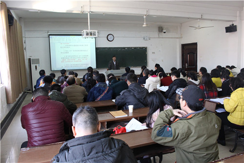 教职工政治理论学习会上,董建国就此次赴江浙一带考察情况与教职工们分享了自己的见解。他用科研和国际合作两个指标来说明未来技能加学历的复合型人才和应用型本科院校的重要性,同时分析了现阶段我校在各项成绩上的进步和不足,勉励老师们为学校的建设、为机械工程学院的发展添砖加瓦、贡献力量。
