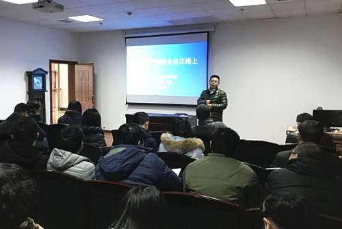 本网讯 12月14日,信息继教党总支和机关一直属党支部全体党员在图书馆10楼多媒体会议室参加政治理论学习。学校纪委书记王波同志主讲《全面从严治党永远在路上》专题党课。