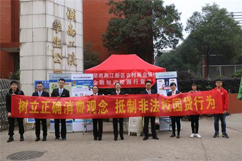 本网讯 近日,由我校金融银行协会、湖南湘江新区农村商业银行、经济管理学院团总支共同举办的金融知识校园行宣传活动在学生公寓门口举行。