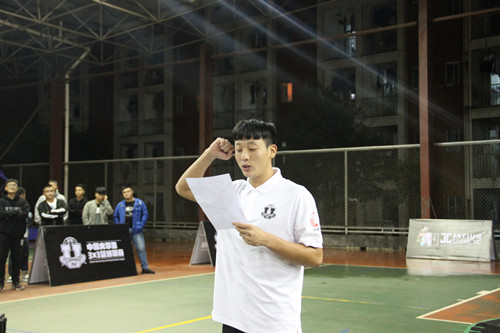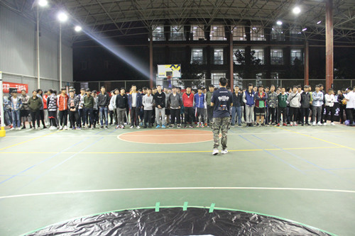 本网讯 10月16日晚,2017-2018中国大学生3×3篮球联赛我校海选赛开幕式于训练馆顺利举行。本次比赛由体育艺术部主办,校学生文体部、学生篮球裁委会承办,校草根篮球队教练刘星欣、本次联赛各裁判员、42支参赛队伍以及许多热爱篮球的学生观众参加了本次开幕式。