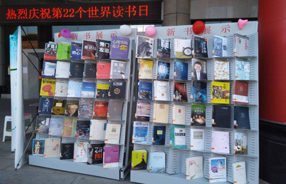 本网讯 为庆祝第22个世界读书日,进一步活跃校园读书文化氛围,4月23日上午,读者协会在图书馆门口开展了“相约四月”世界读书日精品书展活动。