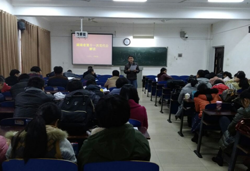 本网讯 12月20日下午,根据学院党委统一部署,经济管理系党总支在1413教室集中学习了湖南省第十一次党代会精神,系总支书记李树德主持导读,全系教职工参加会议。