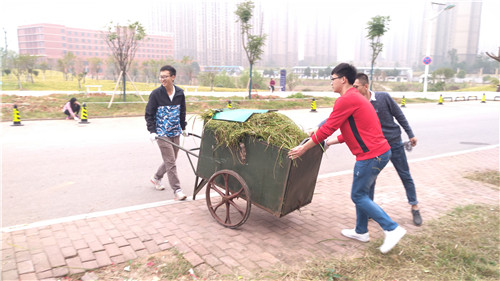 党员捐赠林杂草灌木丛生,且暗藏倒刺,同学们小心翼翼,齐心协力,在学校园丁的帮助下,将党员捐赠林清扫干净;在第五教学楼旁劳动的学员也不甘落后,用铲子、用夹子、用手将道路旁和绿化带内的零碎垃圾一点点清扫干净。