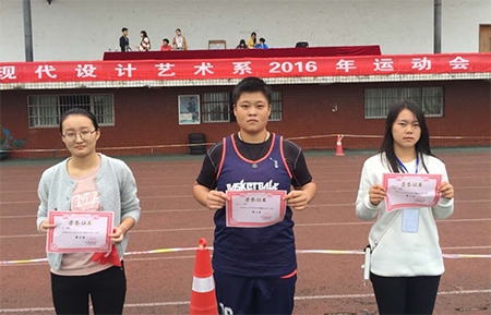 田径场内鼓声阵阵、欢声雷动,一派节日喜庆气氛。运动会采取个人项目和团队项目同场竞技的方式,增加了很多趣味性的团体比赛,力求展示师生团结进取、争创一流的拼搏精神和卓越追求。有近三百名学生运动员参加了本次比赛,获得团体总分第一名的是艺术一队(室内S2016-1.2班)、第二名是艺术三队(广告S2016-1.2班)、第三名是艺术三队(产品S2016-1和包装S2016-1班);获得优秀组织奖的是艺术二队(室内S2016-3.4班)。