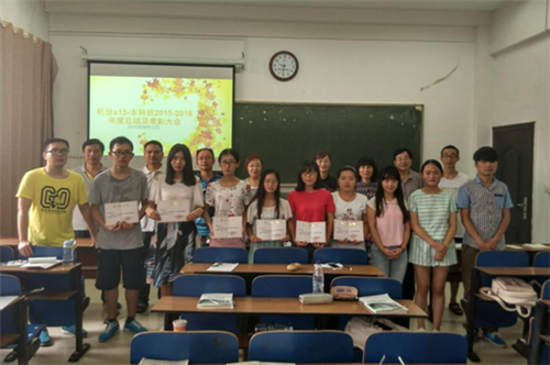 本网讯 9月12日上午,我院2015级机械设计制造及其自动化首届联合培养本科班年度总结暨表彰大会在2306教室召开。学院副院长邱丽芳教授、教务处处长任成高、副处长张宇驰、机械工程系相关负责人以及班级辅导员老师出席会议,会议由该班沈庆同学主持。