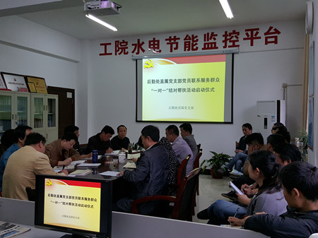本网讯 4月12日下午,后勤处直属党支部组织召开党员政治学习,并进行了2016年支部党员联系服务群众“一对一”结对帮扶活动启动仪式。联系后勤支部的院党委委员、副院长张志勇出席,支部全体党员、后勤处职工群众参加活动。活动由支部书记苗治田主持。