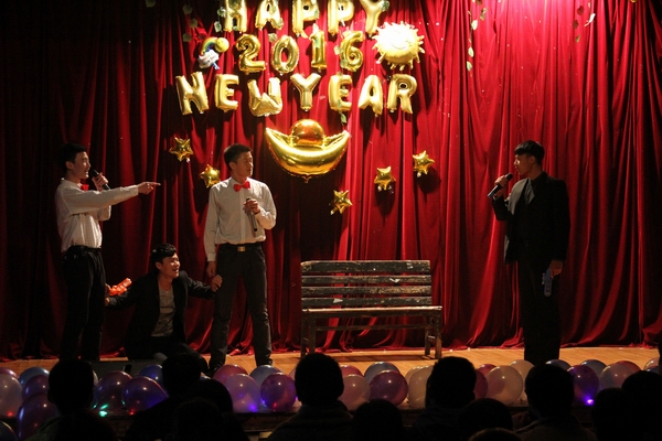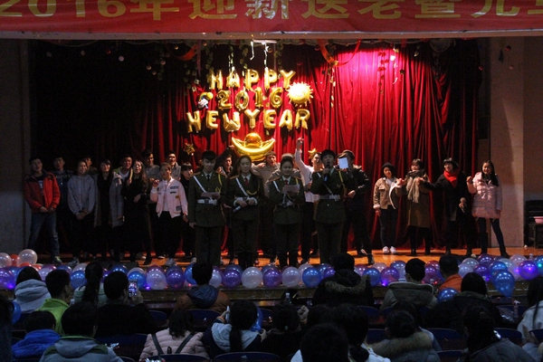 本网讯 12月29日,由院团委国旗礼仪队主办的“国旗礼仪队2016年迎新送老暨元旦晚会”在大学生活动中心隆重举行。院团委副书记黄敏、各系(院)师生代表及国旗礼仪队全体成员共同观看了本次晚会。国礼成员刘涛、潘静雯、袁昱、张钰蓉四位同学担任主持人。