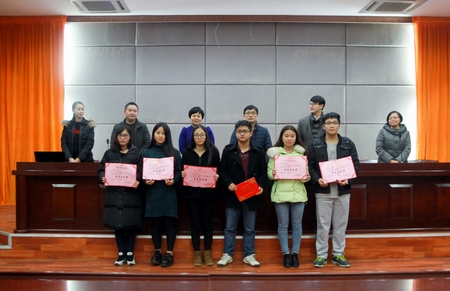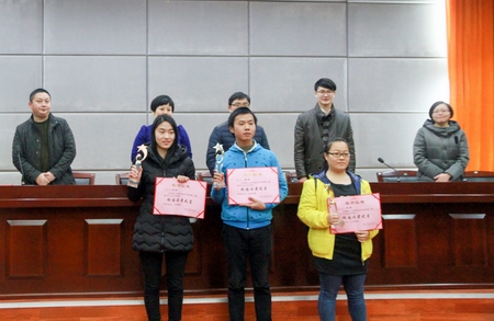 院团委副书记伍俊晖宣读“校园读者之星”、“最美读书者”等奖项获奖名单,与会嘉宾为获奖学生颁发了奖状与奖杯。