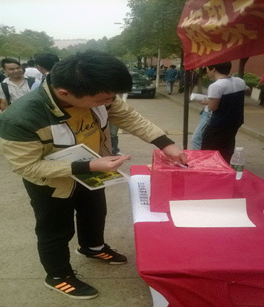 图为募捐活动现场同学们纷纷伸出援助之手献出一份爱心