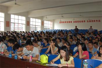 本网讯 丹桂飘香、秋菊溢金的季节,我院又迎来了一批莘莘学子。他们将在这里度过充实而愉快的大学生活。为了尽快帮助2014级新生熟悉新环境、融入新集体,又好又快地步入大学学习生活,9月8日上午,经济管理举行了2014级新生入学教育。