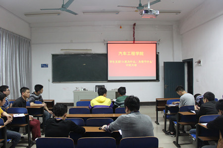 本网讯 4月16日下午,汽车工程学院党总支分支部围绕“入党为什么,为党干什么”开展专题讨论,教师党支部书记易宏彬和学生党支部书记程涛主持所在支部讨论会,汽车工程学院院长任成高、党总支副书记段可分别参加了所在支部的讨论交流。
