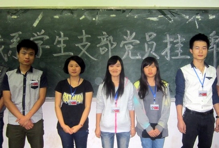 随后,出席活动的系领导和老师为学生党员们佩戴了党员示范牌。按照要求,每一名机械工程系的学生党员在校园内必须佩戴“党员示范牌”,自觉接受广大老师和学生的共同监督,充分发挥党组织联系青年学生的桥梁和纽带作用,团结并带领同学共同进步。
