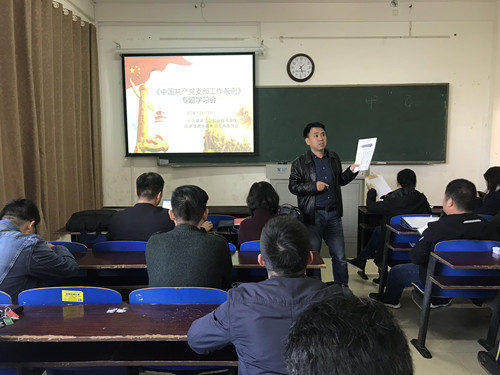 会上,学院党总支书记李树德导读了《条例》全文,《条例》以习近平新时代中国特色社会主义思想为指导,既发扬我们党长期积累的党支部建设宝贵传统,又体现党的十八大以来基层创造的好做法好经验,对加强党的组织体系建设,全面提升党支部组织力,强化党支部政治功能,巩固党长期执政的组织基础具有十分重要的意义。