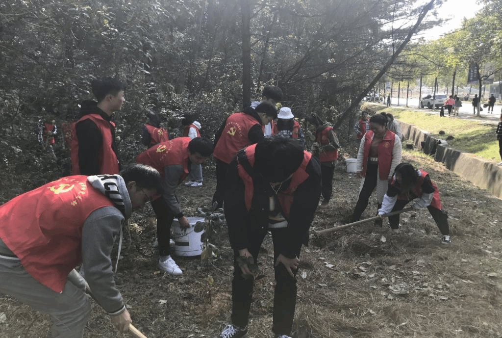活动中,全体党员、预备党员有组织、有纪律、有计划地开展活动。在党小组组长何屹晨、毛晓琼、寿芫的带领下,同学们提前准备好工具及树苗,在活动地点准时集合,乘着阳春三月的阳光,挖坑、种树、浇水,种下一颗颗树苗。
