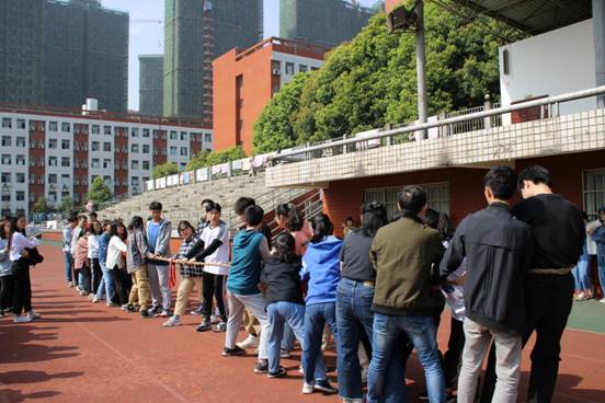 本网讯 两人三足、八人跳长绳、十二人拔河……刺激又有趣的比赛在田径场火热上演,各路学生团队协作,比拼着速递和力量。3月30日上午,经济管理学院第四期分党校初始培训班在校田径场举行“素质拓展”比赛活动。