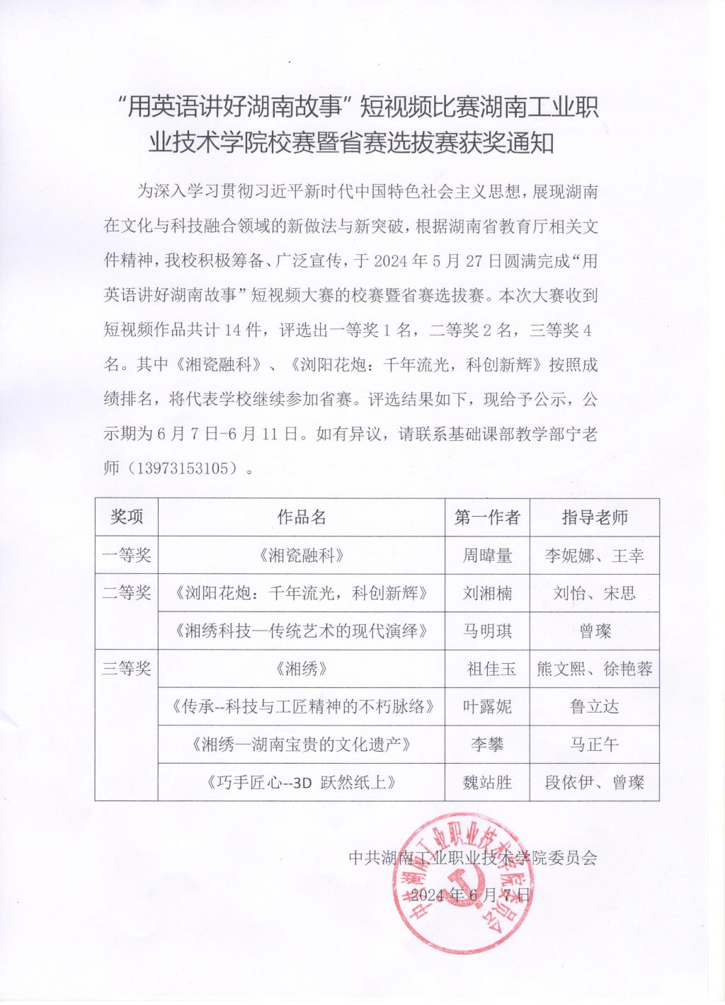 “用英语讲好湖南故事”短视频比赛电子pg游戏平台下载校赛暨省赛选拔赛获奖通知