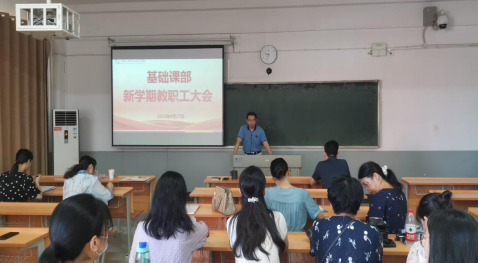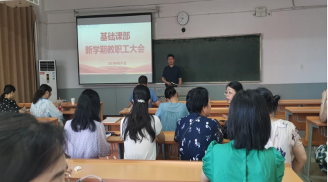 新学期,新气象,新开始,新征程。8月27日上午9点,基础课部在2413教室召开新学期教职工大会。本次会议由邓新春部长主持,全体基础课教学部教师参会,开启了新学期的篇章。