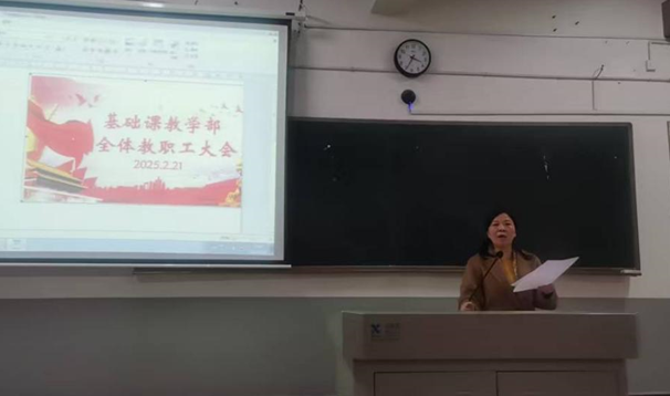 为保障新学期教学秩序的平稳有序推进,2月21日下午,基础课教学部召开了2025年春季学期工作会议。黄振副部长主持会议,部门全体教职工参加会议。
