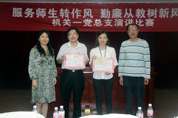 经过评委和工作人员的紧张统分,来自院团委的蔡薇和宣传统战部马跃龙获得了机关一党总支演讲比赛一等奖。