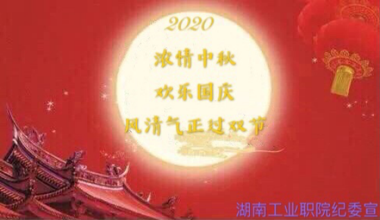 又是一年中秋夜,又是一年国庆时,在2020年合家团圆、举国同庆之际,湖南工业职院纪委祝福全院师生合家团圆!幸福安康!祝福我们的祖国繁荣昌盛!国泰民安!