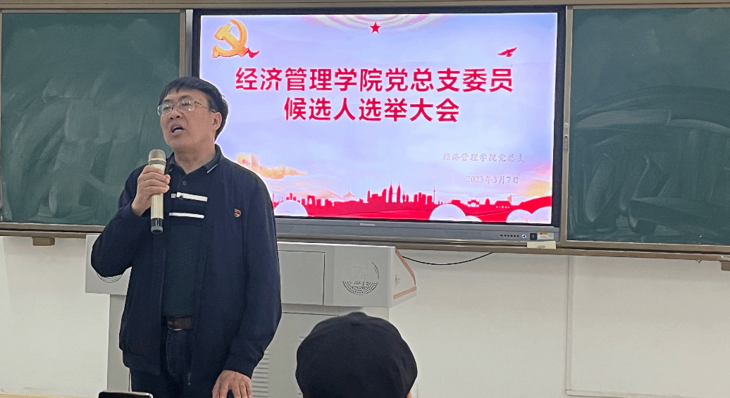 为进一步加强党组织建设,夯实党建基础,根据《中国共产党章程》、《中国共产党基层组织选举工作暂行条例》、《中国共产党普通高等学校基层组织工作条例》的相关规定以及学校《关于做好第二批基层党组织调整换届选举工作的通知》精神,经过前期广泛学习宣传动员,充分发扬党内民主,自下而上、上下结合、反复酝酿,最终确定候选人预备人选,并经学校党委批准,2023年3月7日下午,经济管理学院党总支部委员会换届选举大会在博文楼5117室举行。经济管理学院全体党员参加此次会议,大会由经济管理学院党总支书记杨学文主持,联系校领导侯新华副校长出席大会并发表重要讲话。