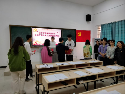 2023年3月14日中午12:30,经济管理学院金融工商物流管理学生党支部在博文楼5117召开换届选举大会。参加人员有经济管理学院金融工商物流管理学生党支部全体正式党员,会议由郭霞同志主持。