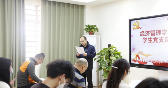 经济管理学院党总支书记杨学文宣布奉新锋、盛娜、谭宇三名同志为新一届支部委员,他对当选的党支部委员表示祝贺,并要求新一届的党支部充分发挥战斗堡垒作用,充分调动每一位党员的积极性,发挥党员的模范带头作用。积极发展新党员,把培养、吸纳更多的入党积极分子和优秀同志到党员队伍中来作为一项重要工作。大会在庄严的《国际歌》中顺利闭幕。