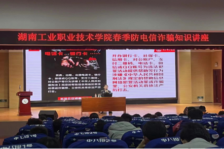 为进一步增强学生的法律意识,让广大学生认清新型电信诈骗犯罪的本质和手段,切实提高反诈反骗意识和能力,3月15日下午,由学校保卫部(武装部)主办,机械工程学院与经济管理学院承办的春季防电信诈骗专题讲座在1102大学生活动中心开展。讲座由湖南省反诈专家库成员、长沙市反诈中心宣传负责人翟安警官主讲,机械工程学院、经济管理学院共400余名师生代表参加。