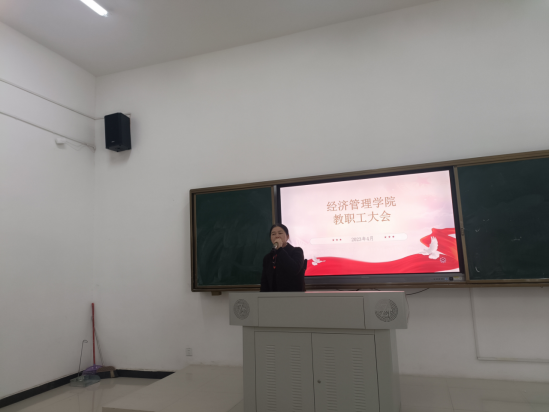 4月25日下午,经济管理学院在5117召开了学院教职工大会暨教学工作会议,学院党政领导、全体教职工参加了会议。会议由学院党总支副书记周敏主持。