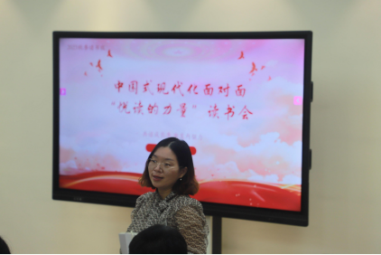 沙龙伊始,周敏为同学们导读。首先,她详细介绍了《中国式现代化面对面》一书的阅读思维和方法路径,该书深入贯彻党的二十大精神、聚焦新时代新征程的重大理论问题、突出中国式现代化的理论与实践这一主题,通过撷取理论精要、详举实例对“强国复兴开新篇”“自信自强启新程”“军强国安护和平”等17个重大问题进行了集中回答和阐释。随后,周敏围绕“如何理解以中国式现代化全面推进中华民族伟大复兴”这一篇章,从“中国式现代化是怎么来的、什么是中国式现代化以及怎么走稳走好中国式现代化道路”三个方面带领大家全面学习、把握中国式现代化的理论渊源、深刻内涵、本质要求。她强调,在推动实现强国复兴的道路上,青年学生应该将坚持党的领导作为实践的根本遵循,把个人成长与国家发展起来,着力练就推动中国式现代化的过硬本领。