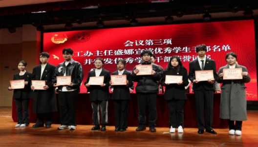 会议伊始,学院党总支书记杨学文致辞,杨书记高度肯定了团总支学生会过去一年所取得的成绩,并对团学会的全体成员提出几点希望,一是希望全体学生干部要紧紧围绕学院和学校的中心工作,服务学校发展大局;二是要牢牢把握青年学生特点,与时俱进推动各项工作落实,用同学们喜闻乐见的方式开展校园文化活动。随后,学院党总支副书记周敏和学工办主任盛娜分别宣读了第二十一届团总支学生会优秀学生干部名单和第二十二届新聘学生干部名单,并为他们依次颁发了荣誉证书和聘书。