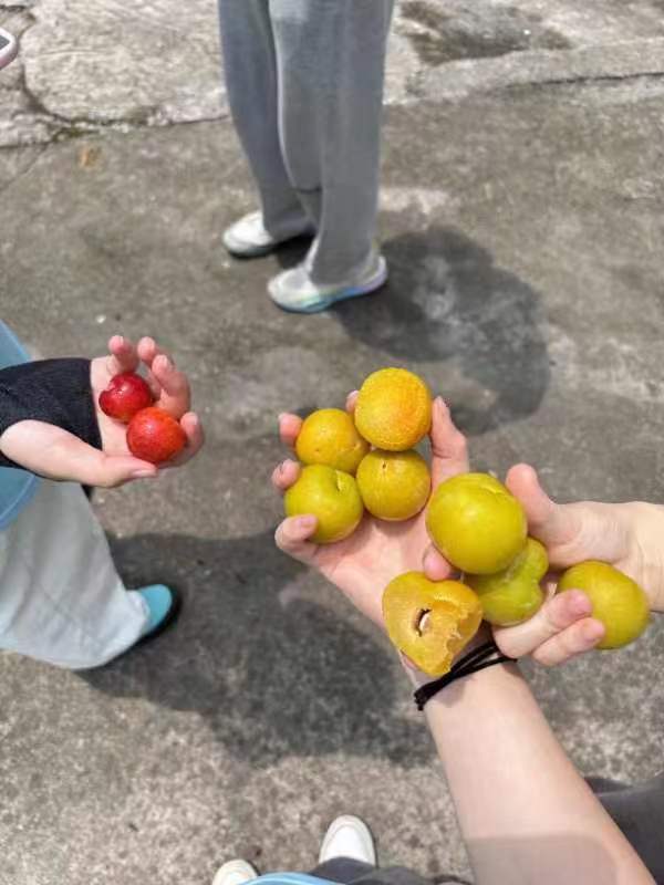 这里的每户人家门前几乎都有种了花椒树,听当地老人说,他们要在农历六月初六前采摘完。我们去的那天正好碰到有爷爷在采摘,这是我第一次见花椒树,凑近闻了闻。花椒的气味热烈,但头车村的村民比这花椒还要热情,每去一户人家都会被邀坐,有的老人还将家里的西瓜、李子拿出来分给我们吃,与我们攀谈家常,把我们当亲朋好友一般,倒是我们显得害羞拘谨了。