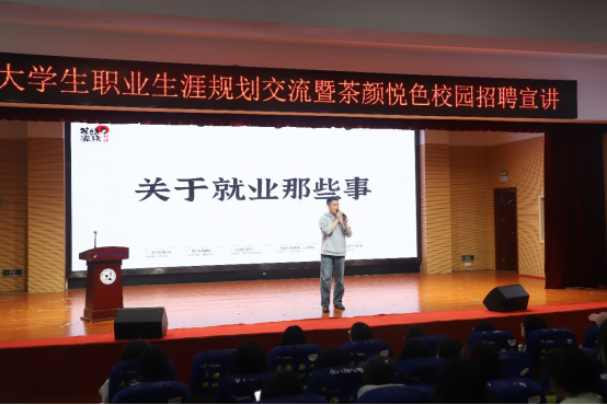 茶颜悦色总部校招负责人李博浩围绕“大学生就业环境”、“第三产业就业市场及发展趋势分析”、“大学生自身条件认知”等主题展开大学生职业规划指导,通过数据对比,帮助同学们了解当前职场环境,明确职业目标,提升求职技能。