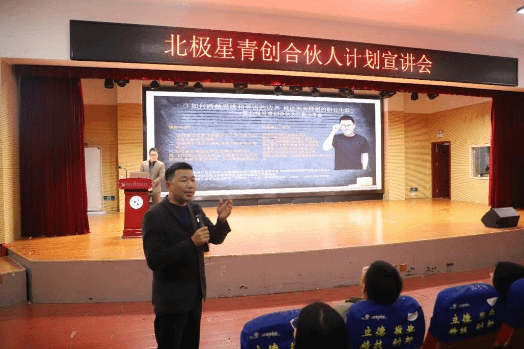 邓尧老师还分享了自己从学生到教育创业者的成长历程。从求学时期的勤奋钻研,到创业过程中的坚持探索,每一个真实故事都饱含奋斗的汗水与智慧,深深打动了在场学子。在介绍北极星青创合伙人计划时,邓老师重点阐述了该计划在提升青年软实力、提供实践就业机会等方面的独特优势,为同学们描绘了一个充满可能性的发展平台。
