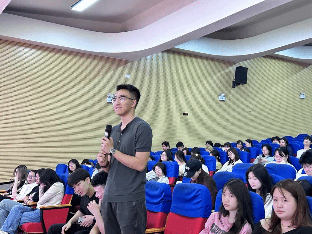 讲座过程中,学生积极的参与互动。当被问到对朋辈心理辅导的理解时,金融24-2班邓泽睿同学积极发言,认为这次讲座,让大家学到了更多专业的方法,能更好地帮助同学们。他的发言引发了在场同学的共鸣,大家纷纷点头表示认同。此外,易老师还讲解了心理信息员工作的原则和态度。在“参与实践”和“观察与关注”部分,详细介绍了心理信息员和班级心理委员的工作内容、纪律,以及同学们常见的心理困惑、重点关注人群等知识。