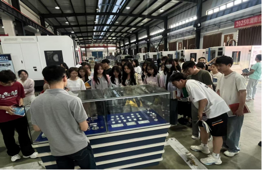 机械学院实训中心教师章思超以校企合作成果为切入点,带领学生近距离观察湖南楚天科技、中联重科等企业的精密零部件,并通过激光雕刻工艺参数动态演示,生动诠释了“产学研用”一体化的创新模式。光纤缠绕内外筒、涡旋发动机二级叶片等高科技产品引得学生连连惊叹。“这些复杂曲面结构的设计与制造,让我对智能制造的技术细节有了全新认识。”一名金融专业学生感慨道。