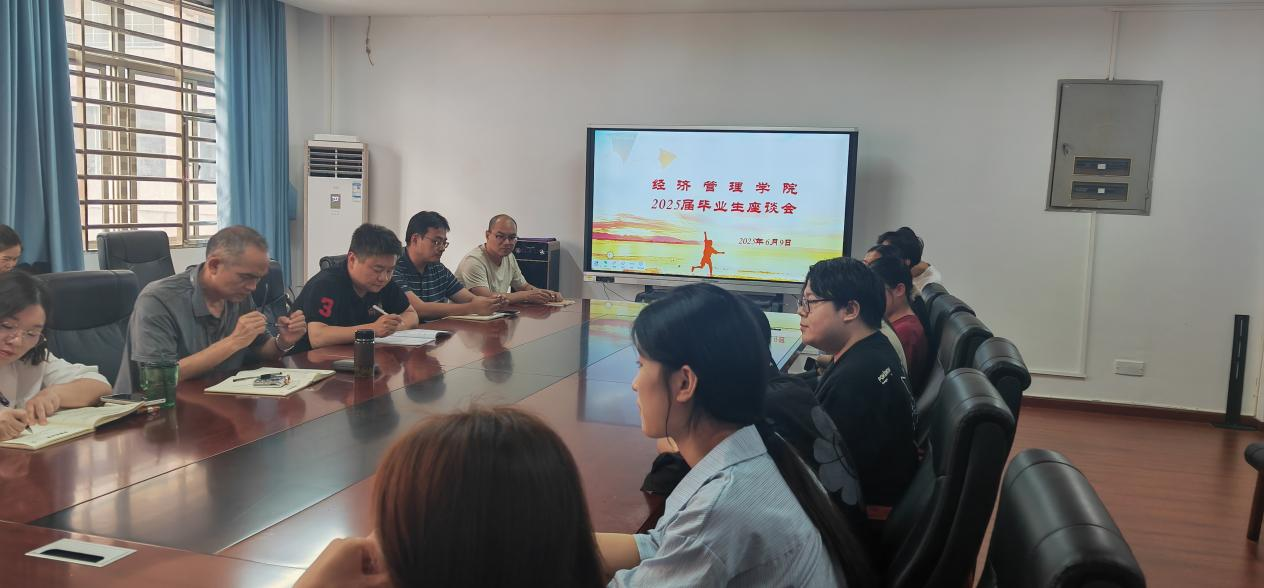 为进一步加强毕业生离校教育,广泛听取毕业生对课程教学、学生管理及人才培养的意见建议,持续优化学院教育教学质量,2025年6月9日,经济管理学院在博文楼5319会议室召开2025届毕业生代表座谈会。会议由学院党总支副书记周敏主持,学院党政领导班子成员、毕业班辅导员及毕业生代表参会。