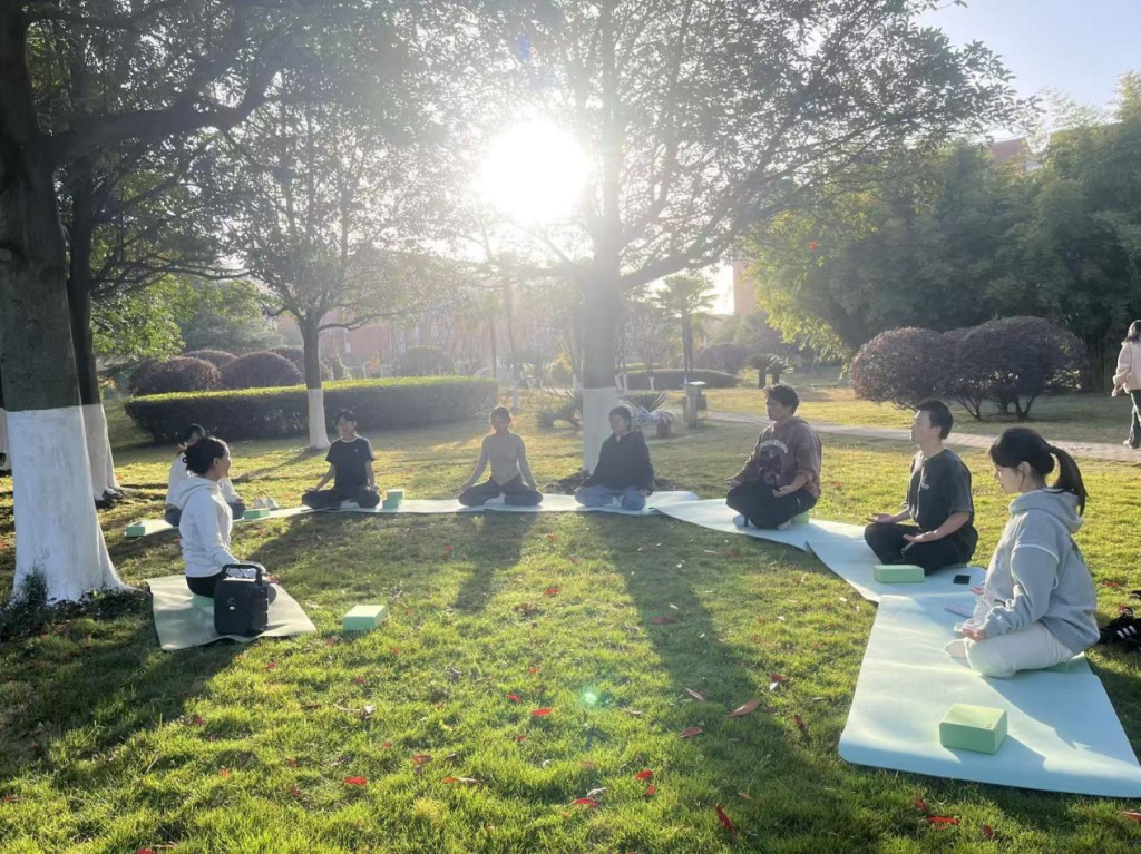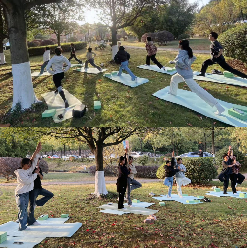 活动特别设计了需要高度默契的双人瑜伽序列,如镜像虎式、互信树式等。在谭宇老师的引导下,许多原本因社交焦虑而回避互动的同学,从最初的目光闪躲、动作拘谨,到逐渐尝试与搭档进行非语言沟通,最终在相互支撑中完成了挑战。现场见证了从个体紧张到团队协作的转变,气氛由疏离渐趋融合。