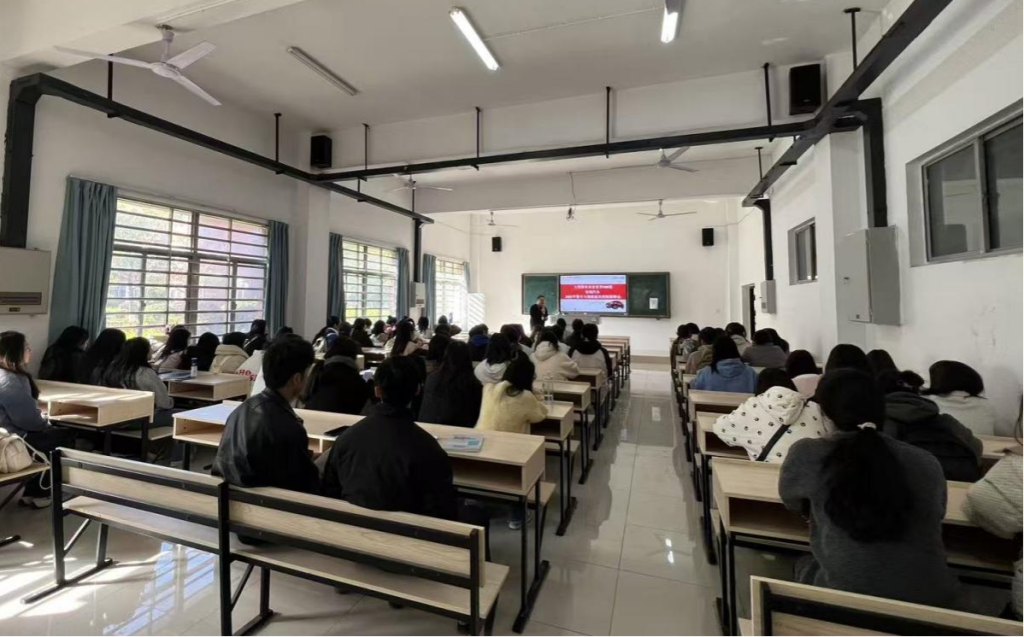 宣讲会上,奇瑞汽车招聘负责人赵宋林介绍了企业发展与招聘需求。他通过数据和案例,展示了奇瑞作为大型国有企业的实力——旗下拥有300余家子公司,年营收超4800亿元,连续22年保持自主乘用车出口第一,2024年销量达260.4万辆。针对本次招聘的整车与物流板块,赵宋林重点解读了计划物流、中世物流等岗位职责,包括仓储管理、备件配送、供应链协调等内容,并强调了物流专业学生的竞争优势。