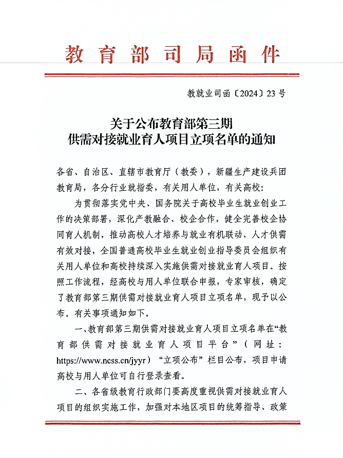 喜报:我院成功立项5个教育部第三期供需对接就业育人项目
